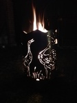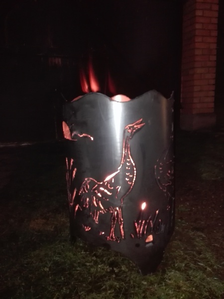 Feuertonne aus Stahlblech, Motiv Kraniche im Abendrot